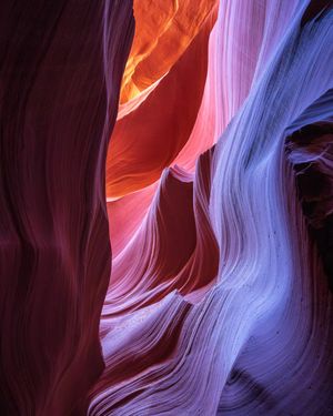 Colorful swirls caused by thousands of years of erosion in Lower Antelope Canyon, Arizona.